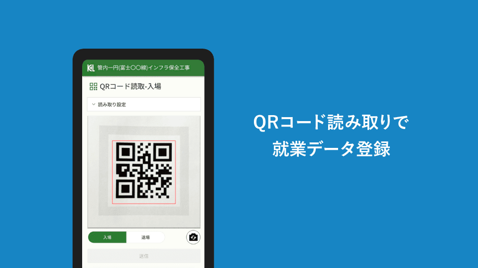 「KENTEM-CareerLog」から発行した、各技能者の固有のQRコードを管理者のモバイル端末などで読み取れば、就業履歴登録が完了します。