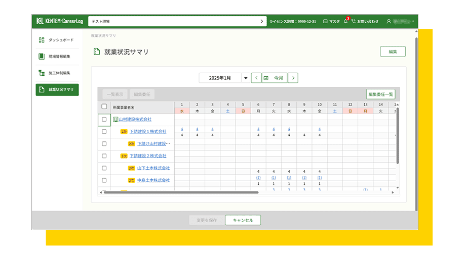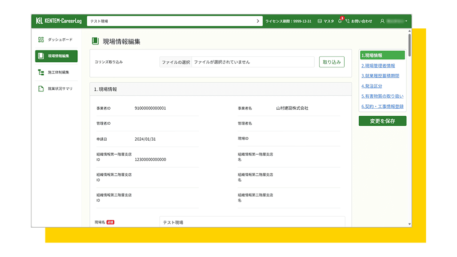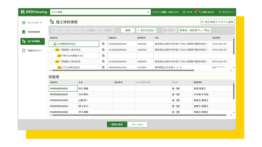 施工体制情報の登録・編集・マスター管理