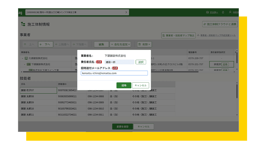 また、協力会社を招待することで、協力会社管理者に読み取り権限を付与することができるので、確認・承認作業を行うだけで協力会社の登録作業が完了します。